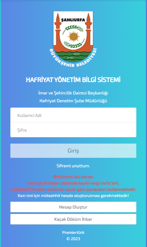 Hafriyat Yönetim Bilgi Sistemi İçin Tıklayınız…